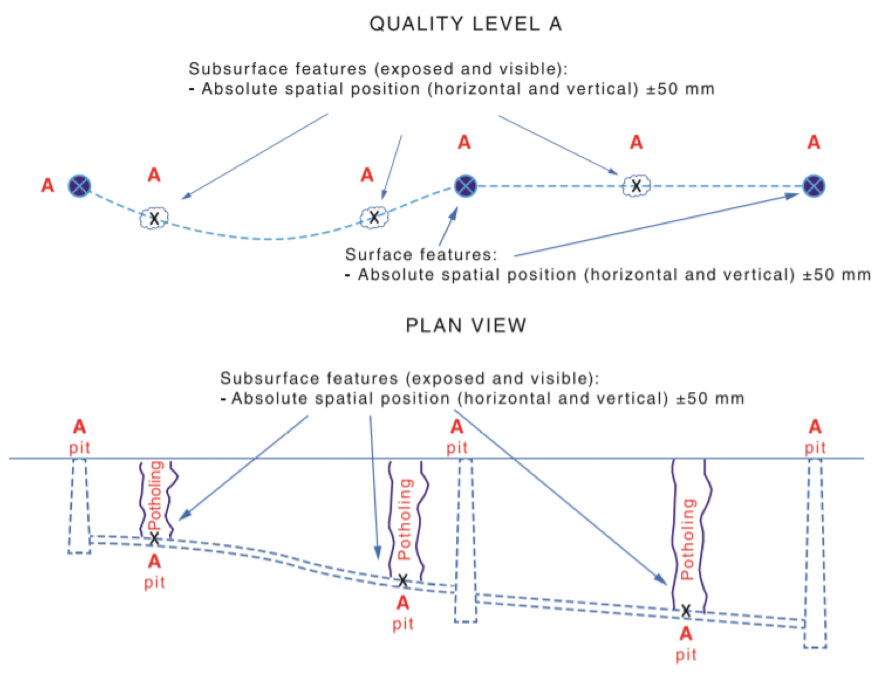 Quality A – The highest Level, to make it simple the utility has to be located and sighted e.g generally by potholing.