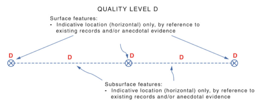 Quality D – Lowest Level of the four levels. Using existing records, cursory site inspection & anecdotal evidence.